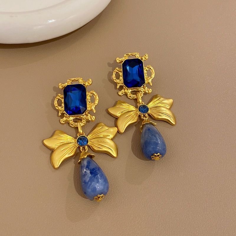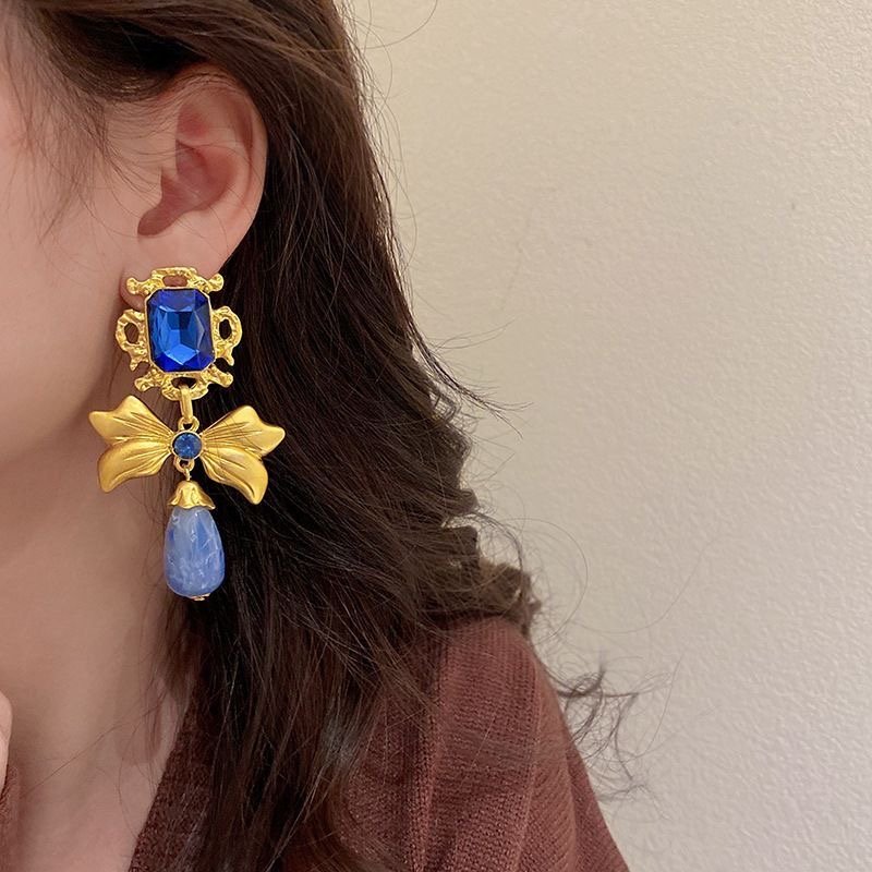 925 silver diamond bow earrings retro quantity