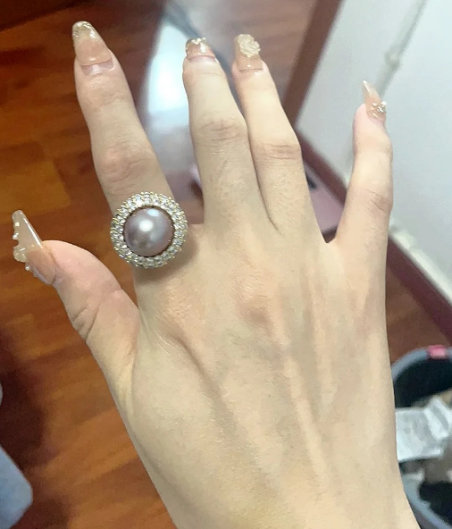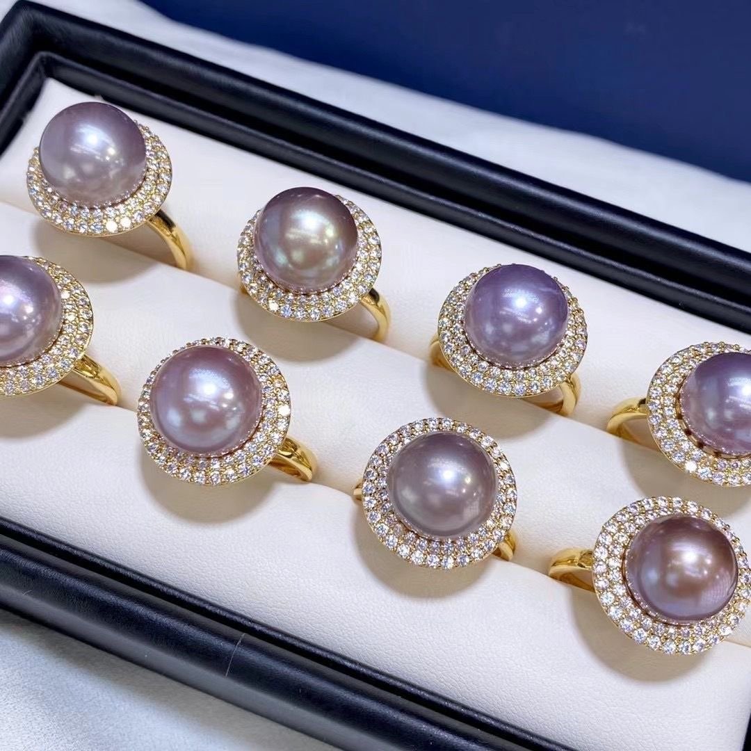 Freshwater pearl purple ring 13mm round bead 18K gold-coated ring holder