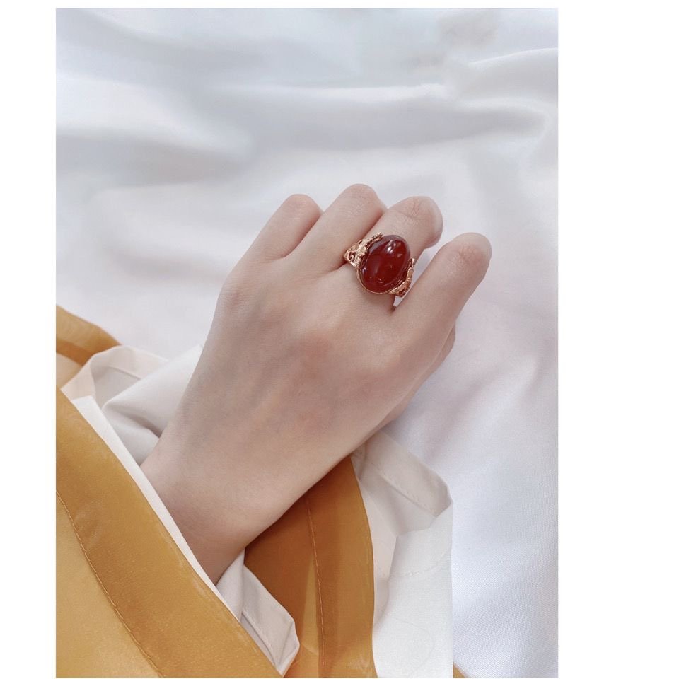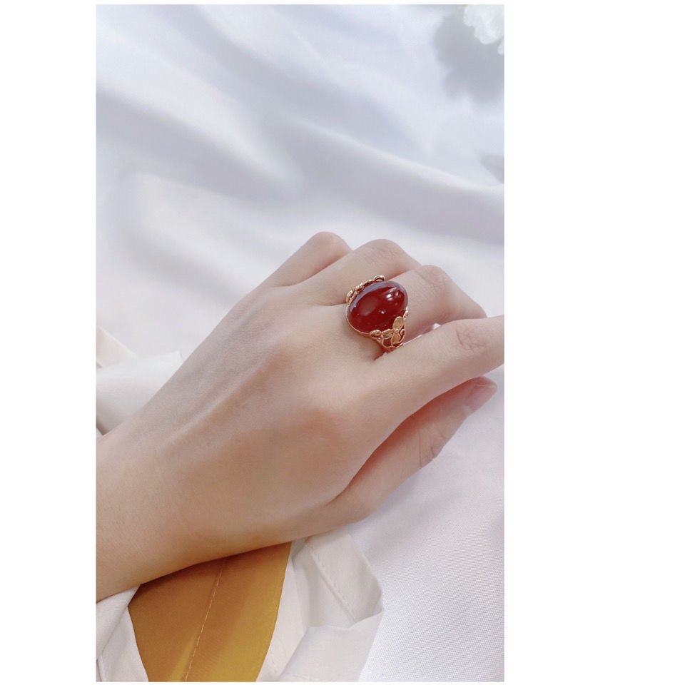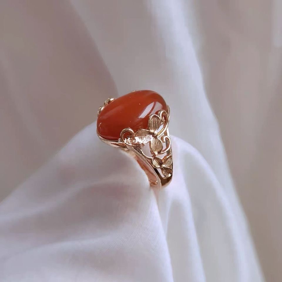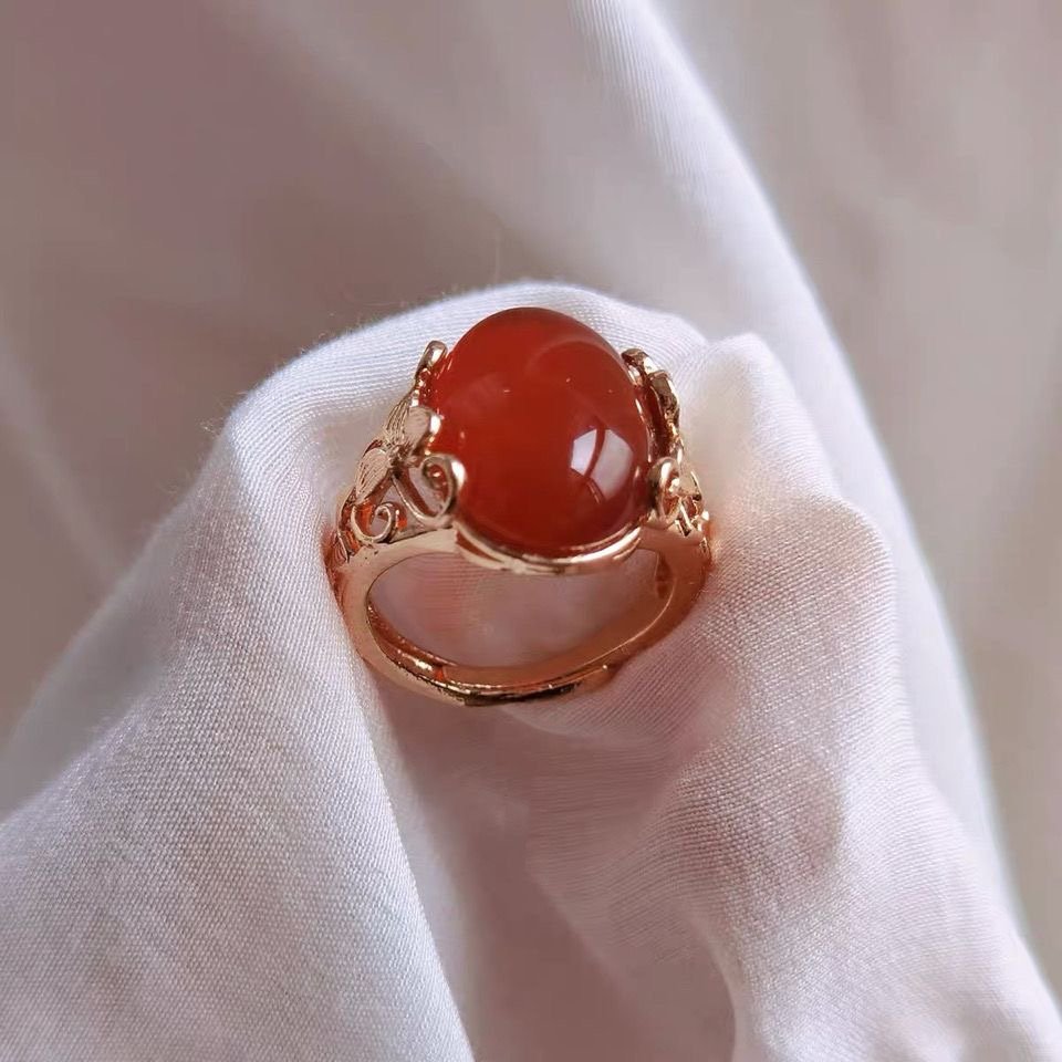 Carved gold openwork lace double-color gold diamond red corundum colorful ring